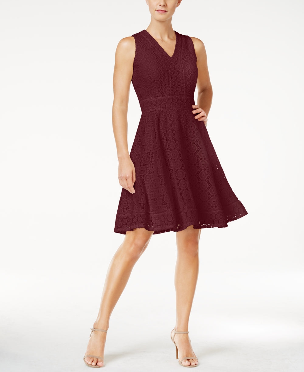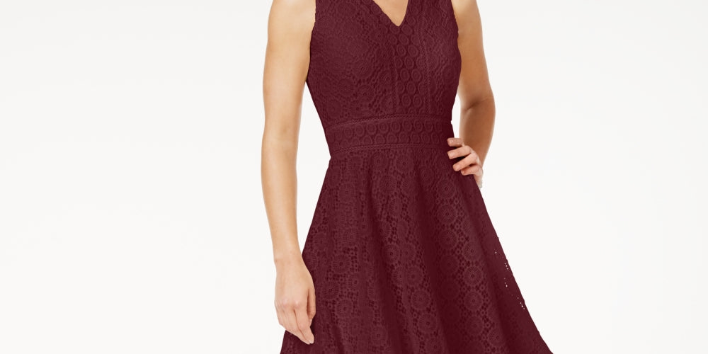 Charter Club Women's Lace Fit & Flare Dress Red Size X-Small