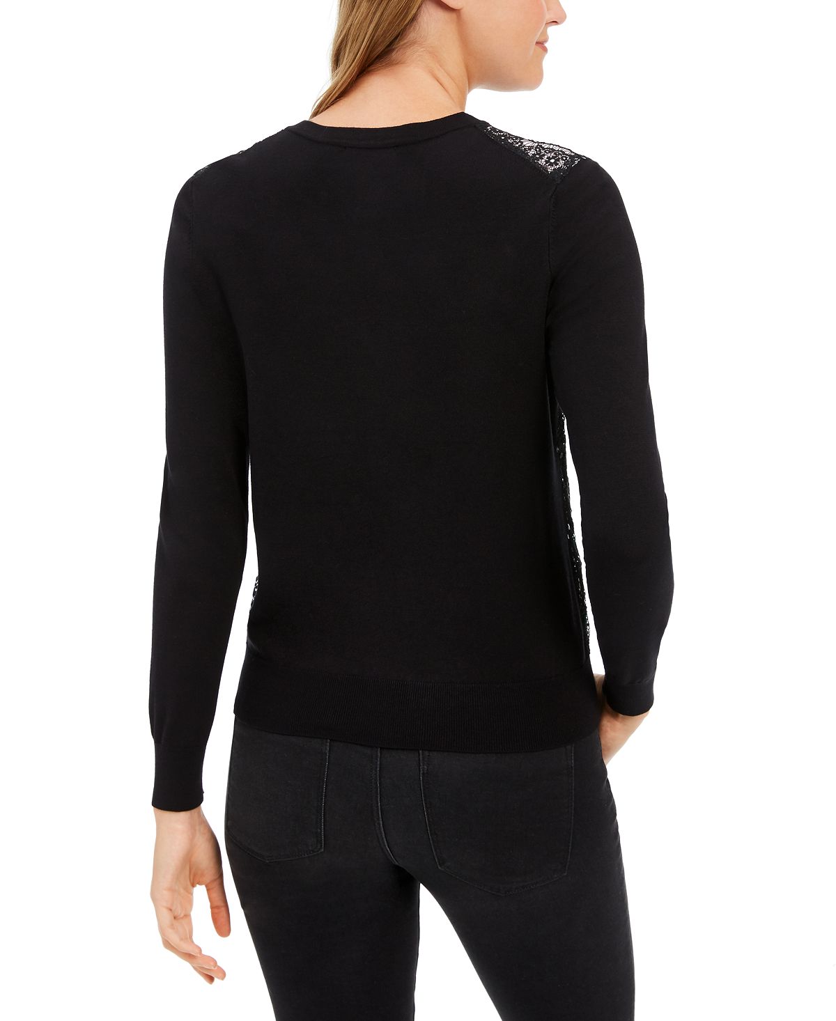 Delicate lace and sparkly sequins elevate this Charter Club sweater| giving you stylish sophistication for your casual look.| Approx. 23-1/2 long| Due to generous sizing| we suggest sizing down For the perfect fit| Crewneck; button closure at front