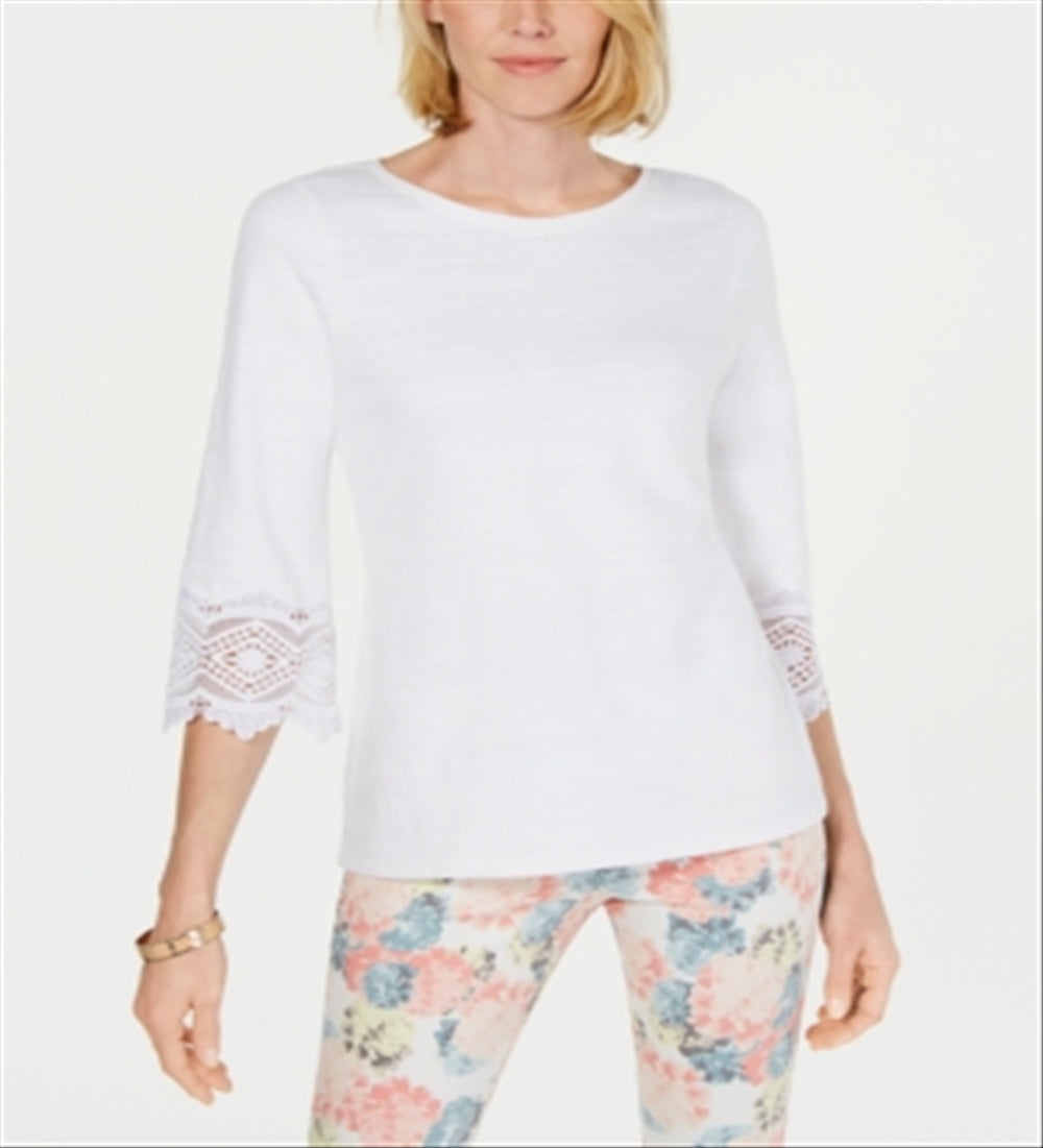 Charter Club Women's Lace Sleeve Top White Size Petite Medium