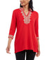 Charter Club Women's Lace-Trim Tunic Top Red Size Small