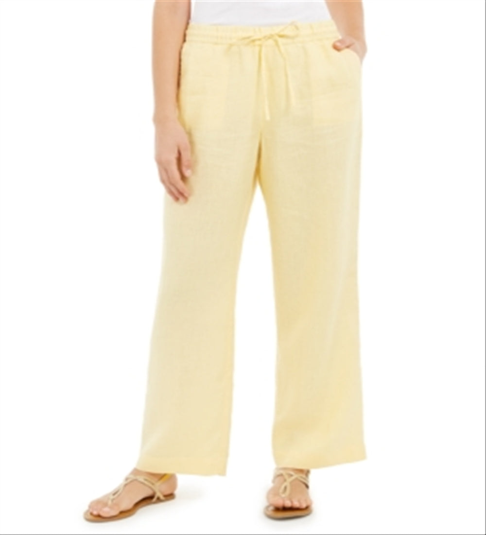 Charter Club Women's Linen Drawstring-Waist Pants Yellow Size XL