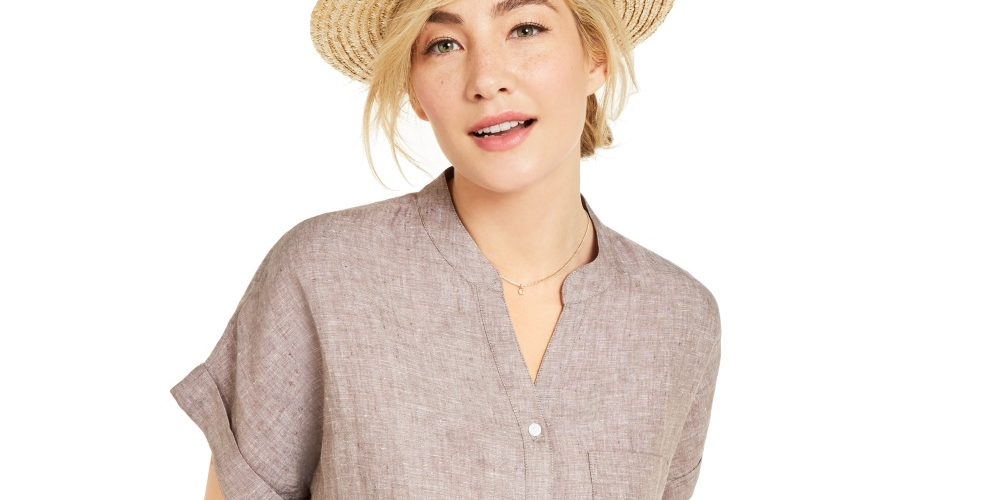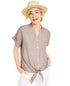 Charter Club Women's Linen Tie Front Button Up Shirt Brown Size X-Small