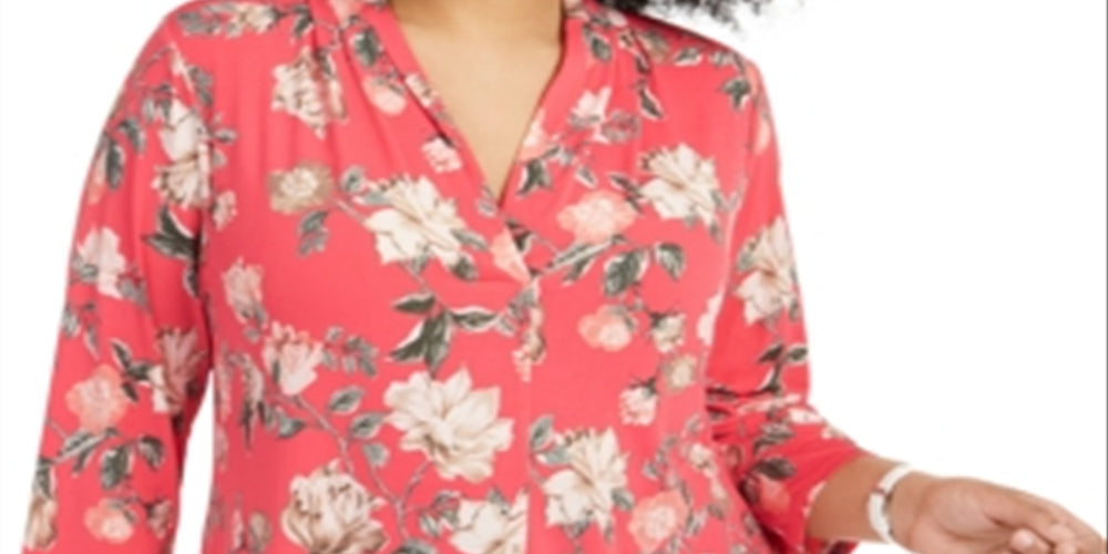 Charter Club Women's loral Print Pleated Neck Top Pink Size 3X
