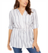 Charter Club Women's Metallic Striped Tassel Trim Button Front Top White Size XX-Large