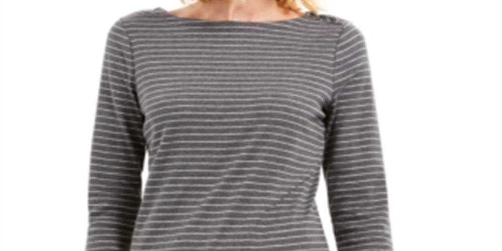 Charter Club Women's Metallic Striped Top Gray Size Petite S