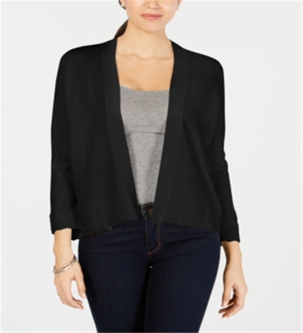 Charter Club Women's Open Front Cardigan Black Size Petite Small
