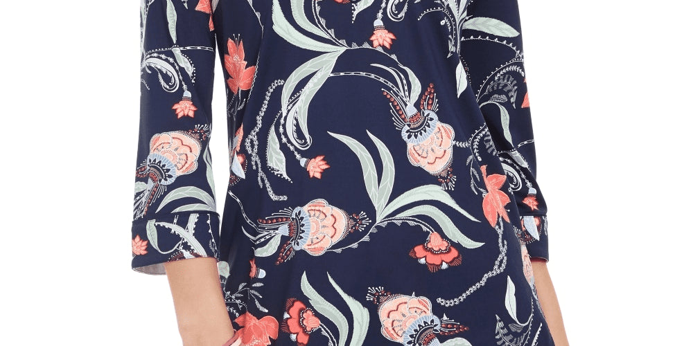 The Charter Club Knit 3/4-Sleeve Paisley Tunic Top is a stylish blend of chic design and comfortable wear. This tunic features an eye-catching paisley pattern that adds a burst of color to any outfit. The split neckline enhances the overall aesthetic, providing a trendy yet casual look. Crafted from a soft and breathable fabric, this tunic ensures all-day comfort, making it perfect for both everyday wear and special occasions. With 3/4-length sleeves, it offers versatility for transitional seasons, easily layer it with a cardigan or wear it solo. The relaxed fit allows for easy movement, making it an ideal choice for busy days or leisurely activities. This tunic is a staple wardrobe piece, embodying the essence of casual elegance.