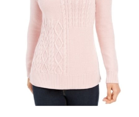 Charter Club Women's Patchwork Stitch Asymmetrical Collar Sweater Pink Size Medium