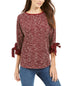 Charter Club Women's Petite Bow Cuff Marled Top Red Size Petite Small