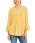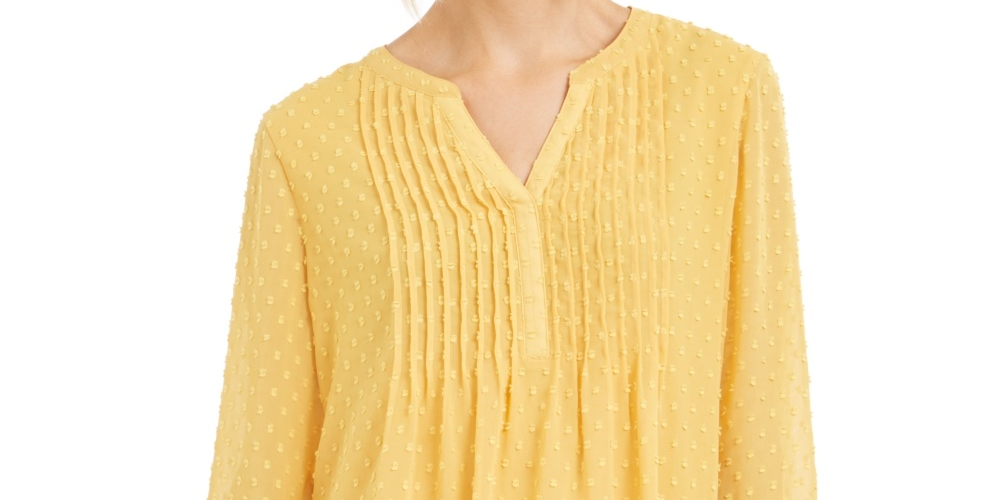 Charter Club Women's Petite Double-Ruffle Textured Pintuck Top Gold Size PL