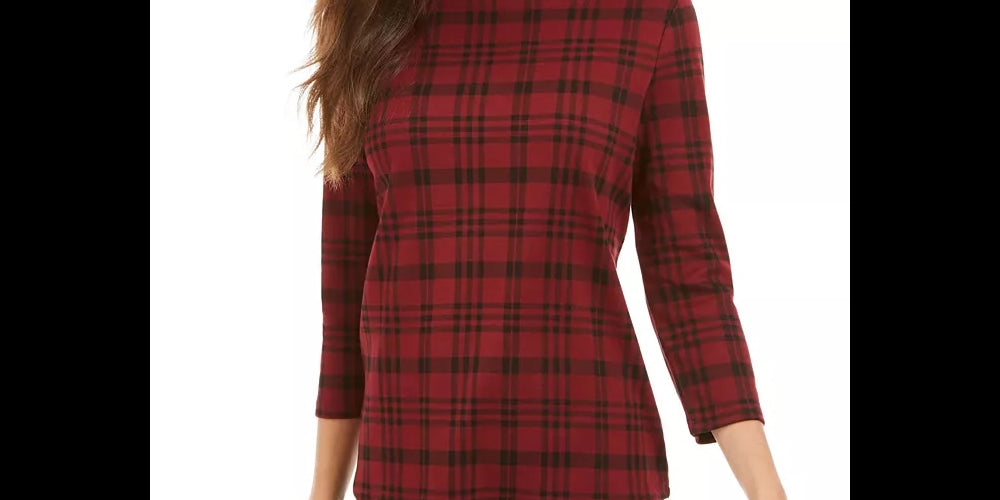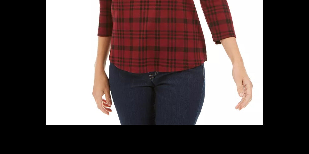 Boat neckline|Button details at shoulder|3/4-sleeves|Hits at hip|Designed to fit and flatter 5'4 and under frame