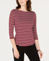 Charter Club Women's Petite Pima Cotton Button-Shoulder Print Top Red -PS