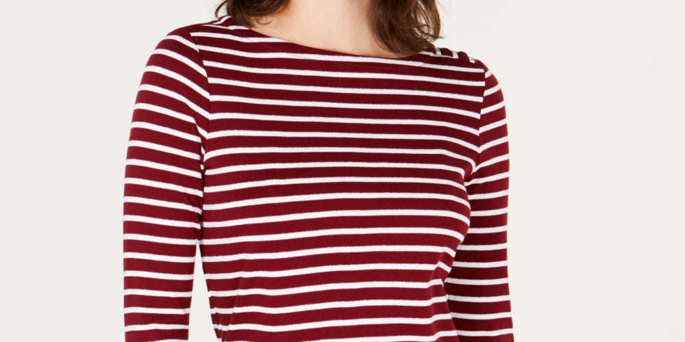 Charter Club Women's Petite Pima Cotton Button-Shoulder Print Top Red Size XL