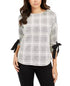 Charter Club Women's Petite Plaid Tie-Cuff Top Grey Size PS