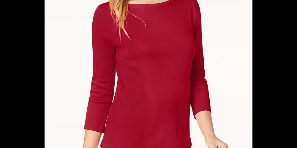 Charter Club Women's Pima Cotton Boat-Neck Button-Shoulder Top Red Size X-Small