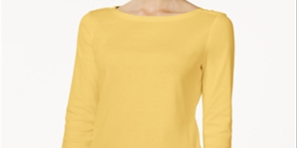 Charter Club Women's Pima Cotton Boat Neck Button Shoulder Top Yellow Size Small