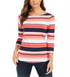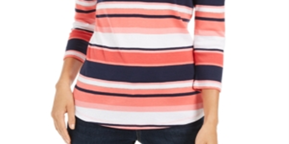 Charter Club Women's Pima Cotton Button Shoulder Stripe Top Coral Size L