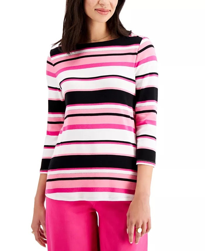 Charter Club Women's Pima Cotton Button Shoulder Stripe Top White Size XX-Large