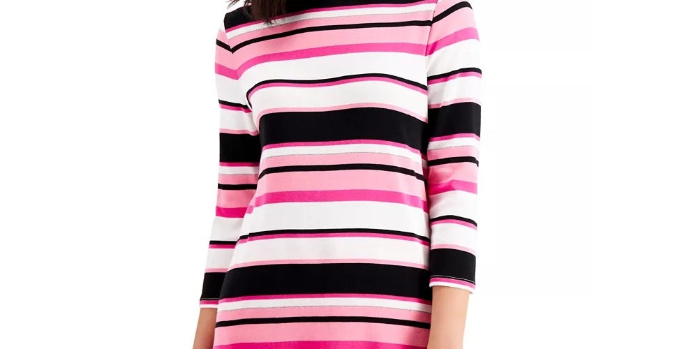 Allover print; button embellishments at shoulders|Boat neckline; three-quarter sleeves|Imported|Web ID: 8538537