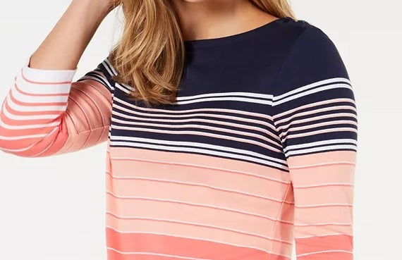 Charter Club Women's Pima Cotton Button-Shoulder Striped Top Pink Size Petite Medium