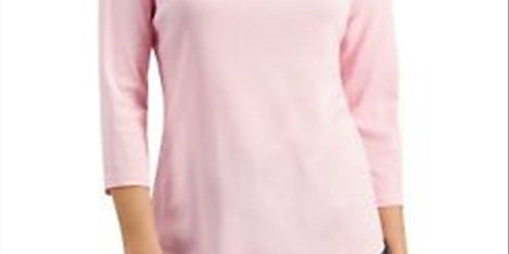 Charter Club Women's Pima Cotton Button Shoulder Top Pink Size Petite Medium
