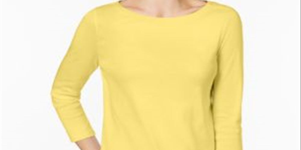 Charter Club Women's Pima Cotton Button Shoulder Top Yellow Size Petite XL