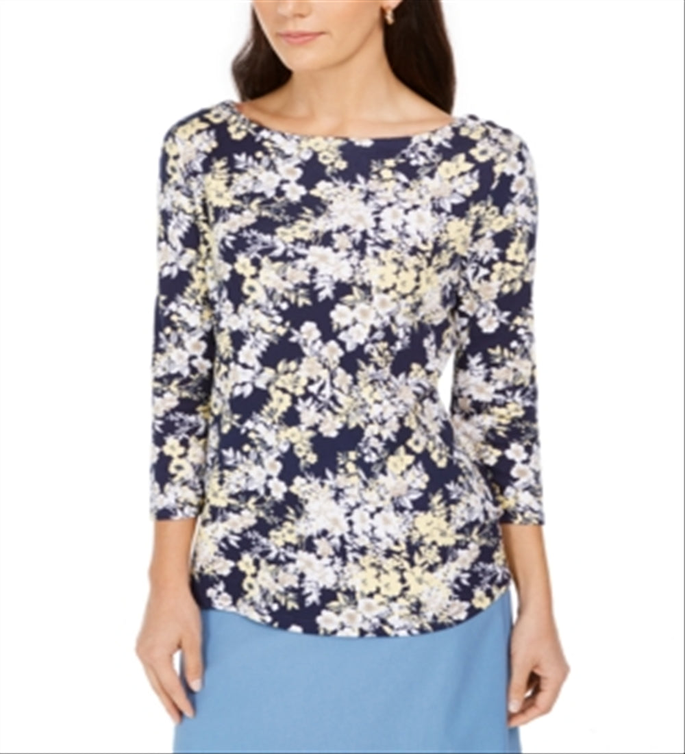 Switch up your essentials with ease in this Charter Club boat-neck top| featuring a mixed print that lends fun and polished flair. | Hits at hip| Due to generous sizing| we suggest sizing down for the perfect fit| Boat-neck