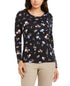 Charter Club Women's Pima Cotton Ditsy Print Top Black Size Large