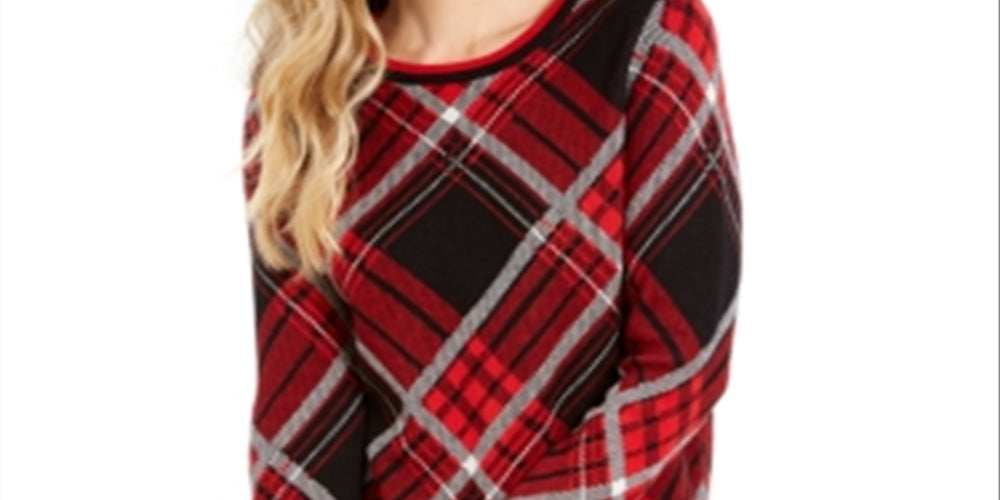 Charter Club Women's Plaid Crewneck Sweater Black Size Large