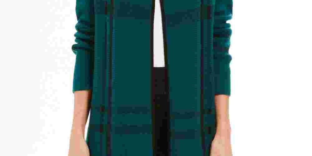 Charter Club Women's Plaid Open-Front Cardigan Dark Green Size Small