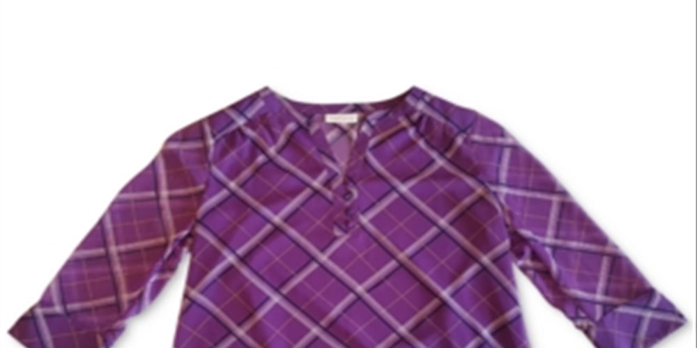 Charter Club Women's Plaid Split Neck Top Purple Size XX-Large