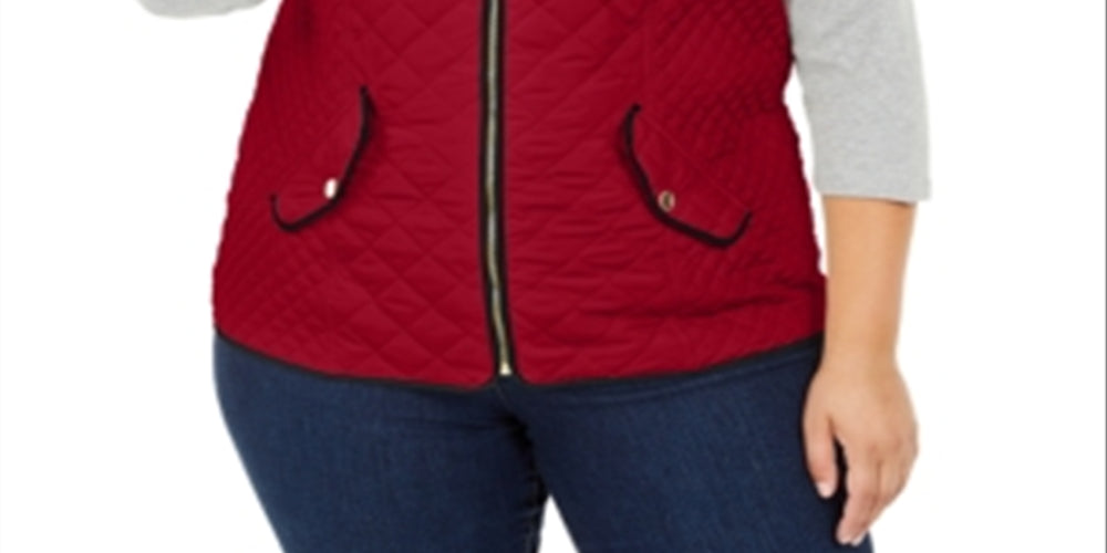 Charter Club Women's Plus Quilted Cold Weather Vest Red Size 3X
