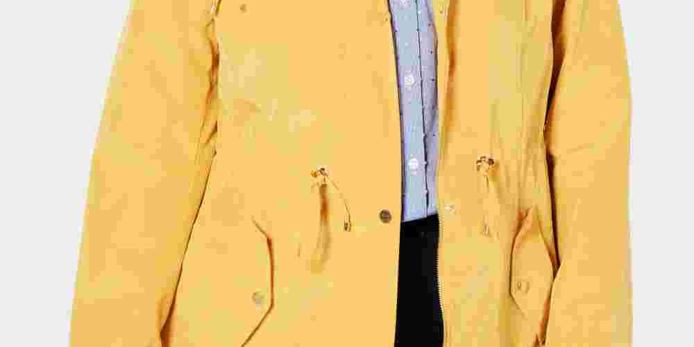 Attached drawstring hood|Front button closures|Two pockets at front|Gold-tone hardware; drawstring waistband|Water-resistant to help weather the storm|Printed lining