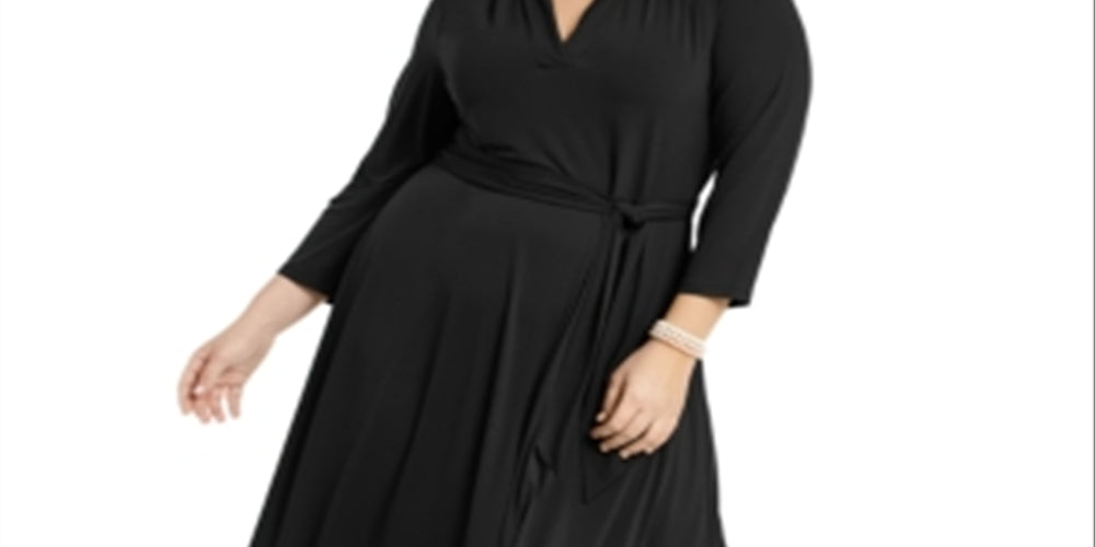 Charter Club Women's Plus V Neck Belted Dress Black Size 0X