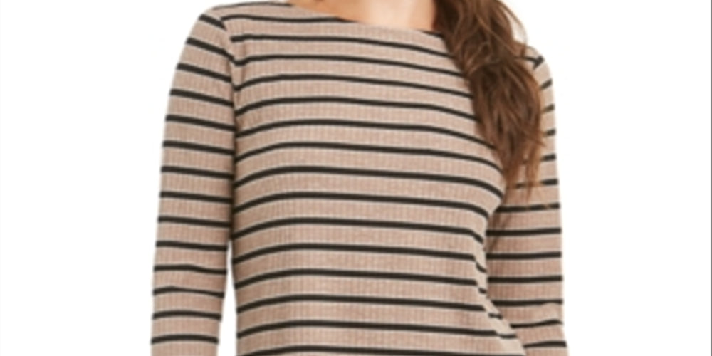 Charter Club Women's Printed 3/4 Sleeve Top Camel Brown Size Petite L