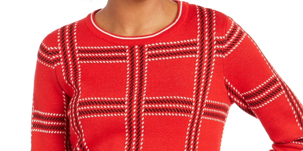 Charter Club Women's Printed Crewneck Sweater Medium Red Size X-Large