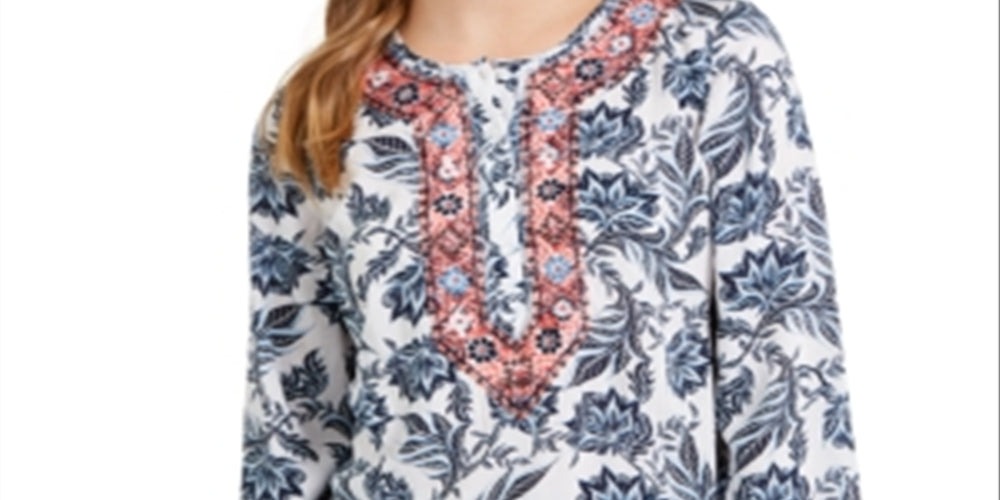Charter Club Women's Printed Embroidered Tunic White Size Small