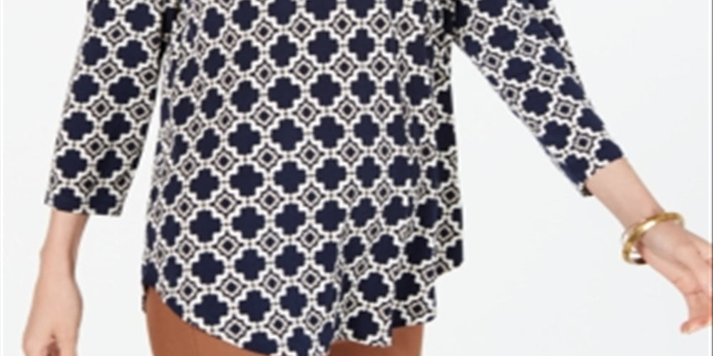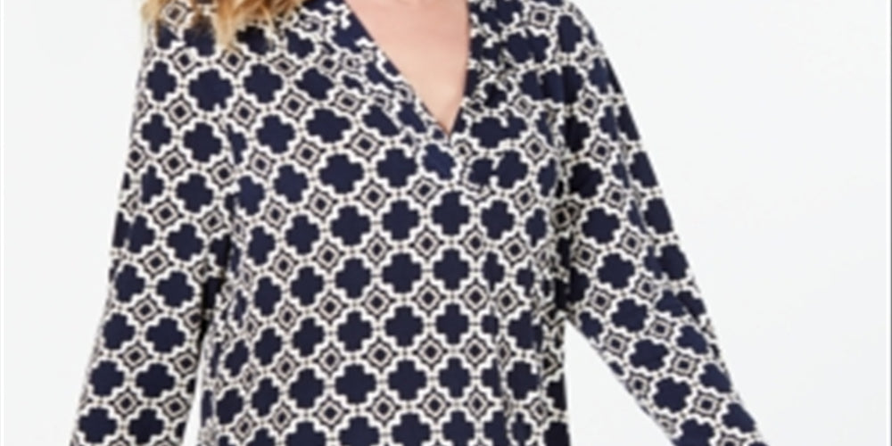 Charter Club Women's Printed Pleat Shoulder Top Blue Size XX-Large
