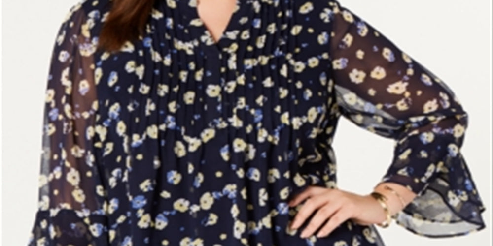 Pintucks at the front and airy tiered ruffle bell-sleeves create charming style for this plus size split neck top from Charter Club