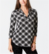 Charter Club Women's Printed Top Plaid Combo Black-White Size Petite S