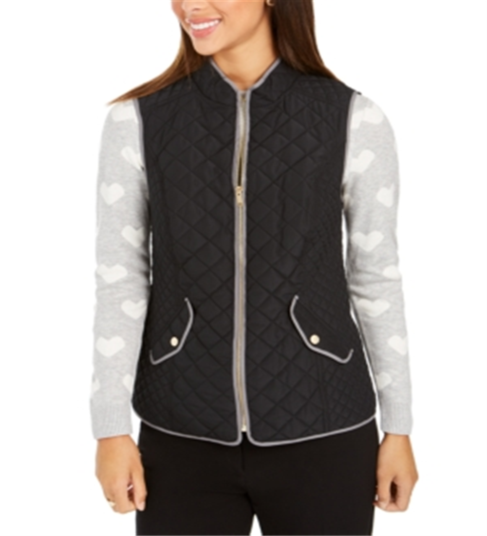 Charter Club Women's Quilted Stand-Collar Vest Black Size X-Small