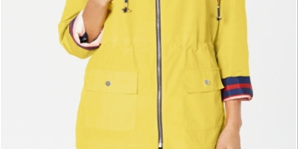 Charter Club Women's Reversible Striped Anorak Yellow Size Large