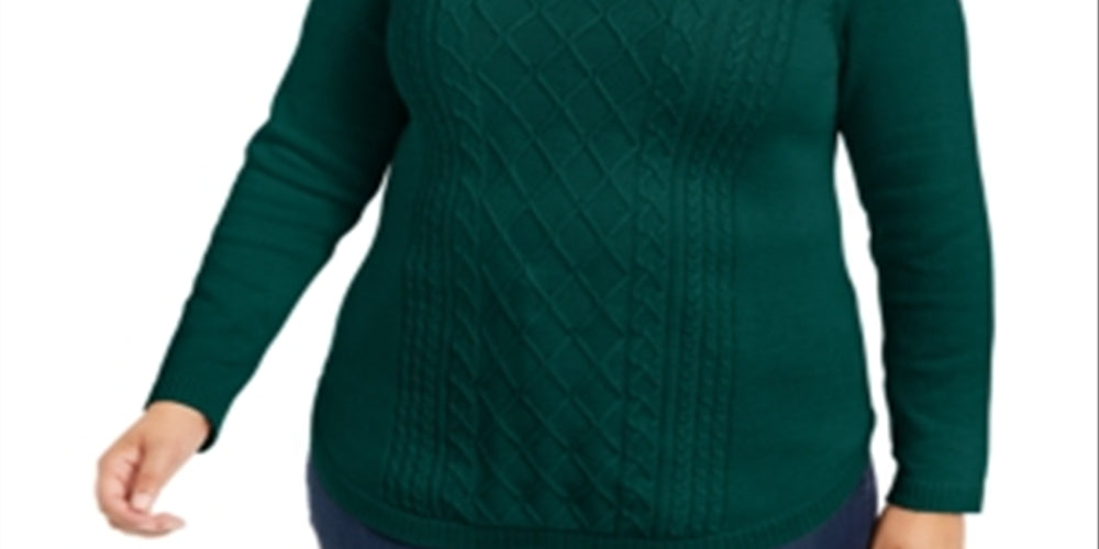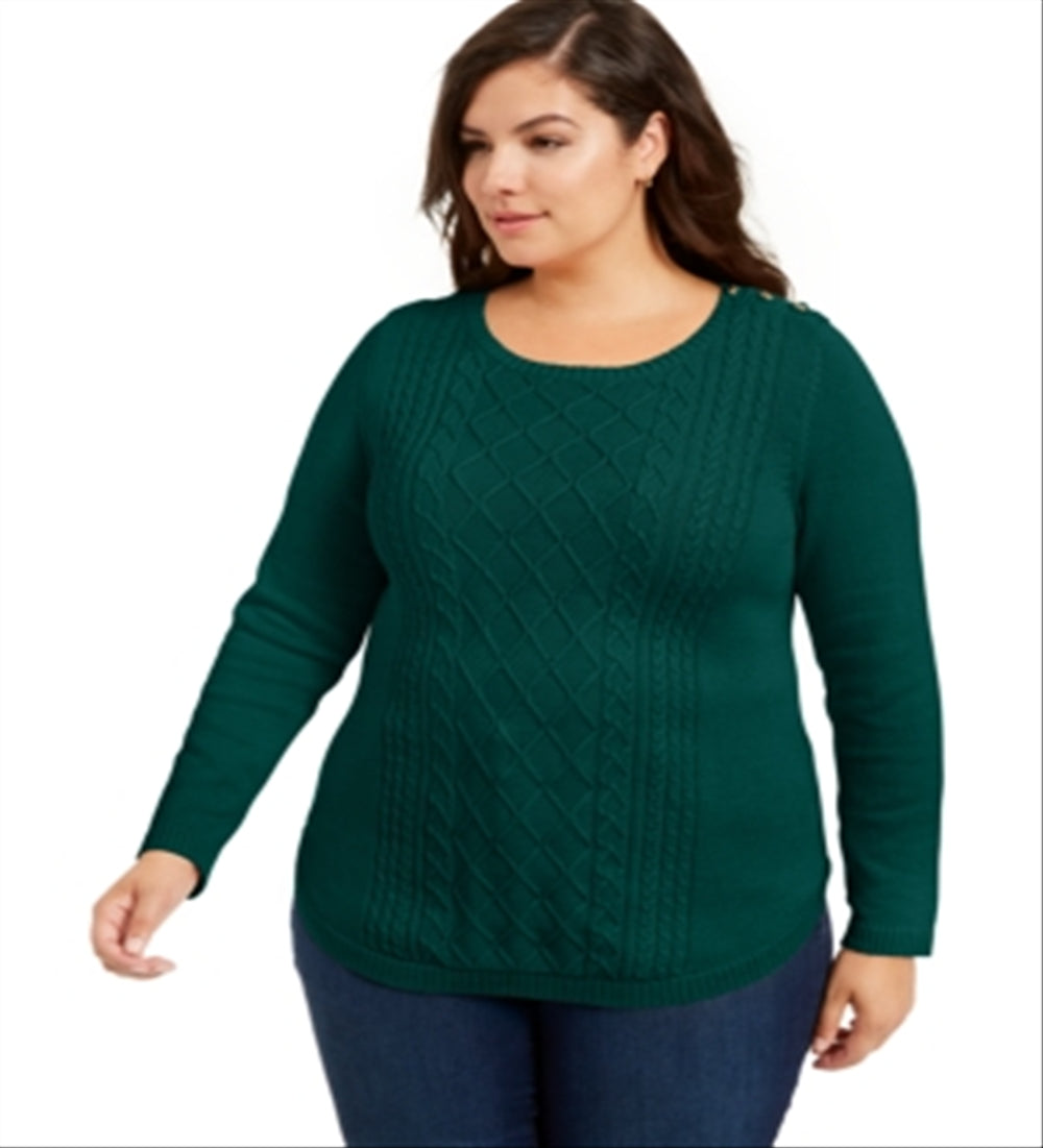 Charter Club Women's Ribbed Trim Button Sleeves Crewneck Sweater Green Size 3X