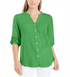 Charter Club Women's Roll Tab Button Down Top Green Size Medium