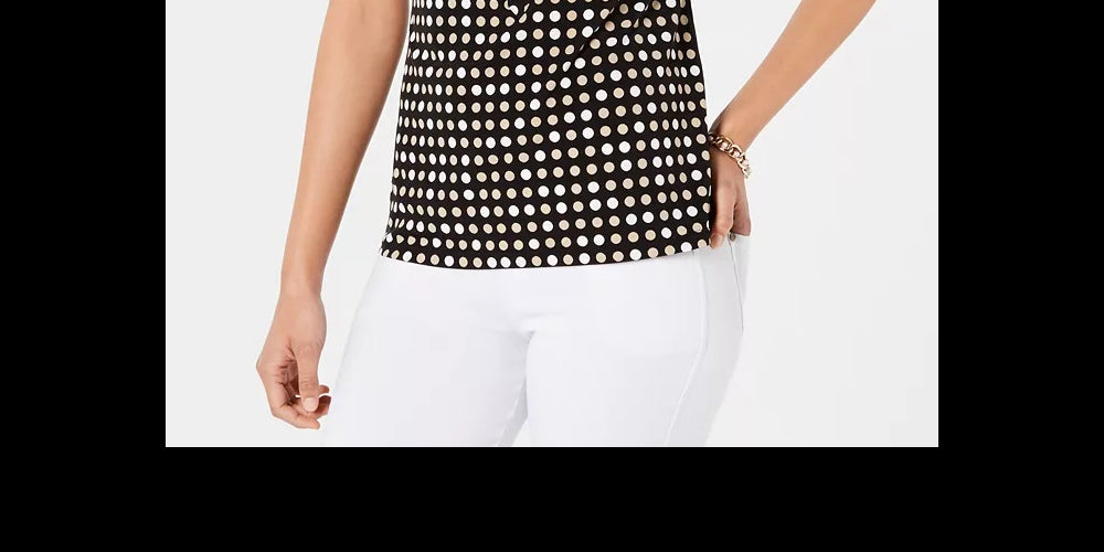 Charter Club Women's Short Sleeve Printed Polo Top Black Size X-Small