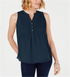 Charter Club Women's Sleeveless Pintuck Blouse Blue Size X-Large