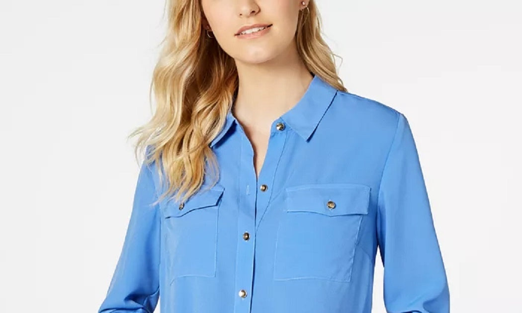 Charter Club Women's Solid Button Up Shirt Blue Size Petite Small