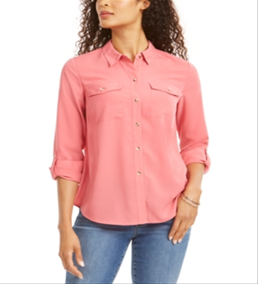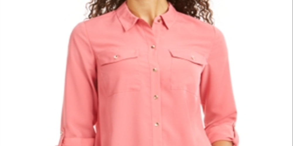 Charter Club Women's Solid Button up Shirt Pink Size Petite Small