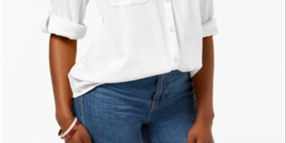 Split Neck Utility Shirt | Roll tab sleeve | 45% Viscose, 55% Cotton