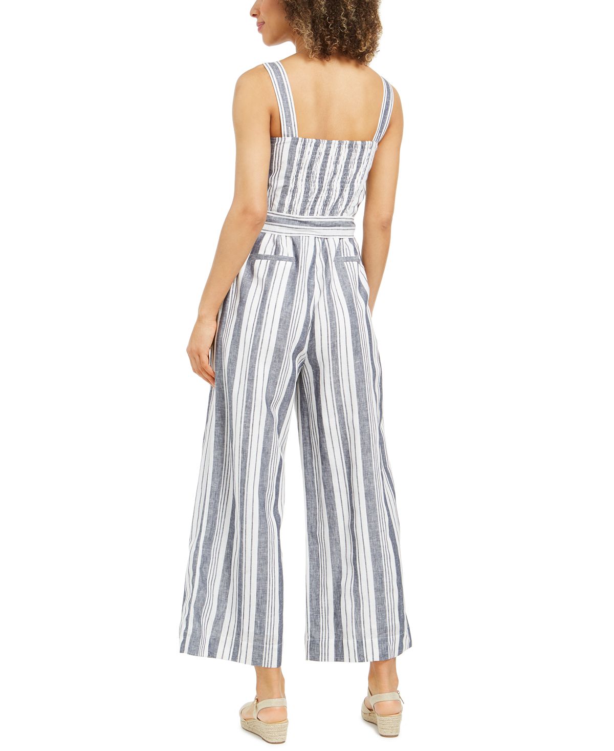 Charter Club Women's Striped Belted Jumpsuit -Gray Size 18
